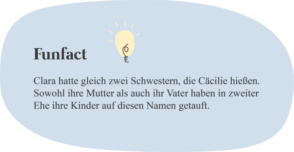 Das erste Kind des Ehepaares, Adelheid, verstarb nach nur wenigen Monaten. Doch bereits im folgenden Jahr brachte Mariane erneut eine Tochter zur Welt. Nun ruhten Friedrichs ganze Hoffnungen auf ihr. Ihr Name, Clara, die Helle, die Berühmte, spiegelt seine Erwartungshaltung wider: Das Kind sollte zu einem leuchtenden Stern am musikalischen Firmament werden.